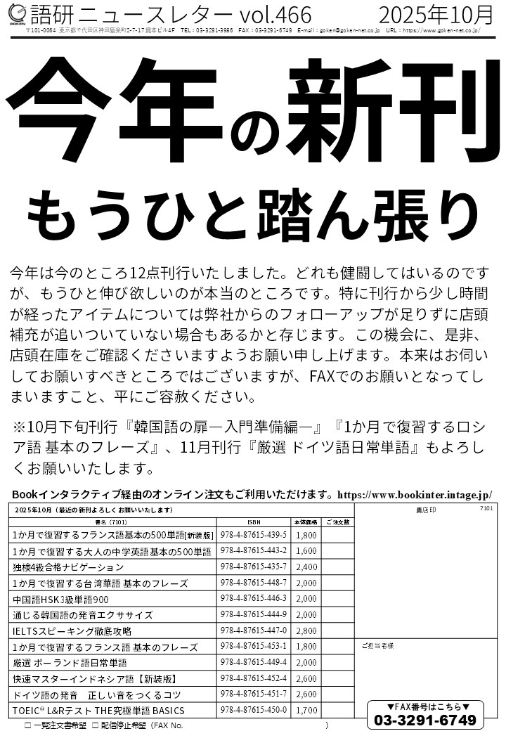 語研が自信を持って世に送り出した2025年の新刊、年末に向けてもうひと踏ん張りです。店頭での補充・展開のほど、何卒よろしくお願いいたします。