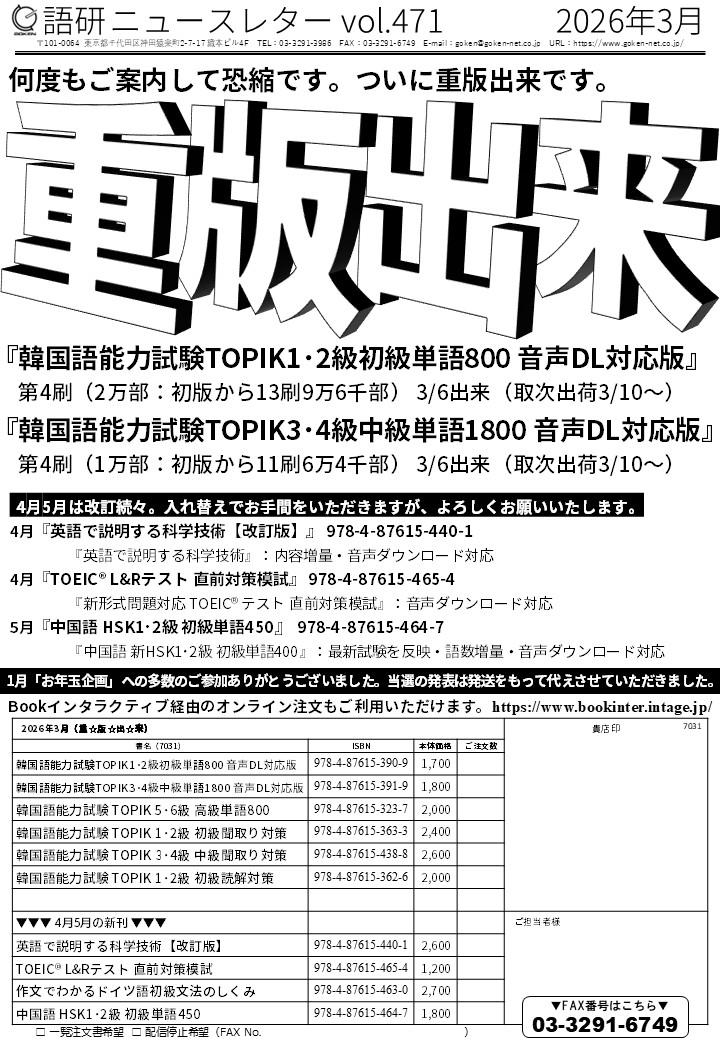 書店様向けのニュースレター、2026年3月号(通算471号)を送信いたしました。